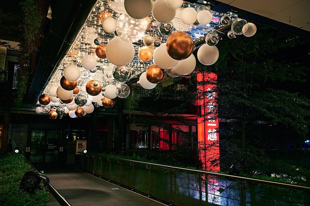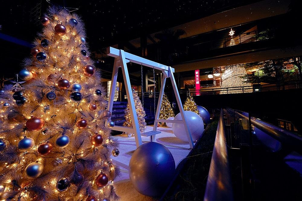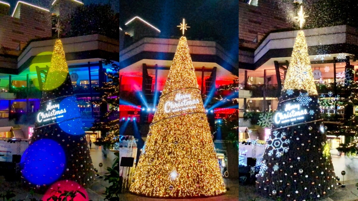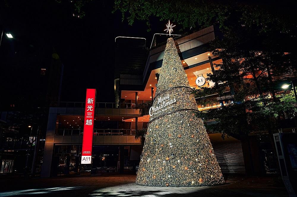 今年的聖誕樹以特調新光三越Pantone色與近百顆特別訂製耶誕球、十萬顆燈泡打造而成,最頂端的八芒星則承載著每一個希望跟祝福齊聚於樹頂,不論是白天或是夜晚都別具風情!