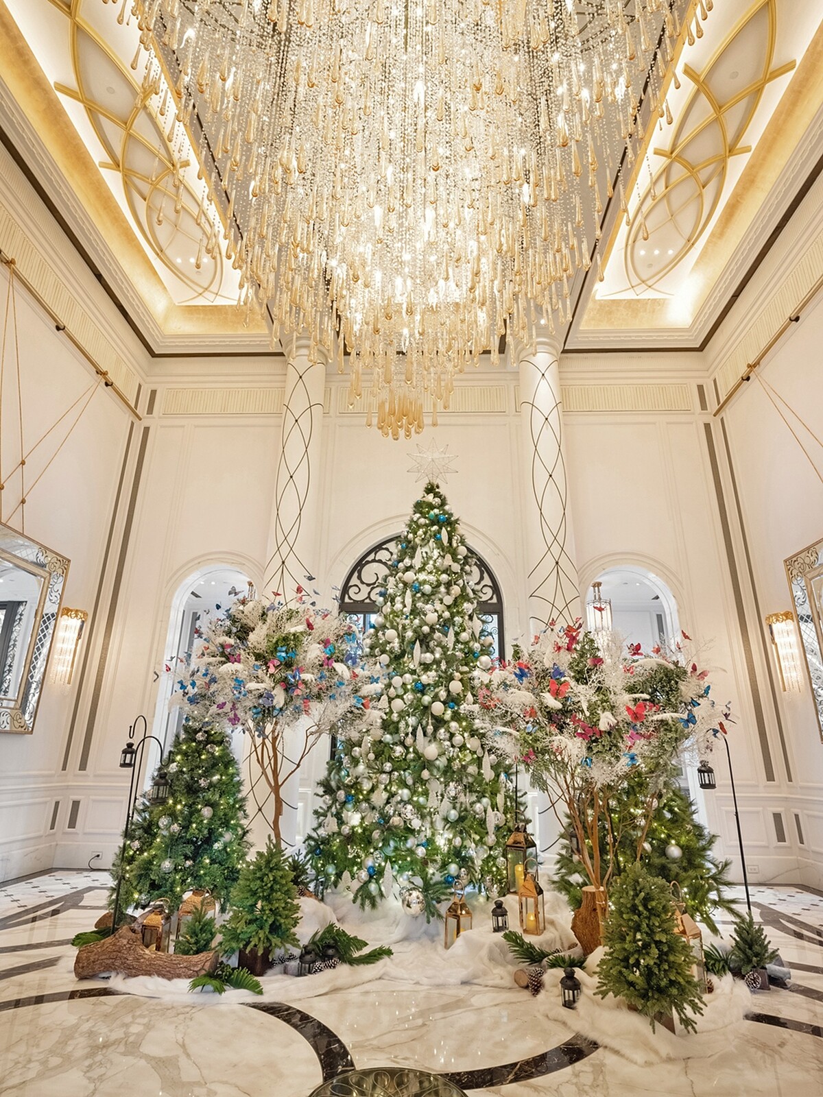 極具奢華歐洲風情的台北文華東方酒店,其大廳聖誕樹每年都是旅客拍照熱點,今年按照慣例,結合如下雪景致、象徵台北意象的蝴蝶打造浪漫聖誕樹,呼應「蝴蝶王國」美名之餘,也傳遞著希望與幸福的寓意。