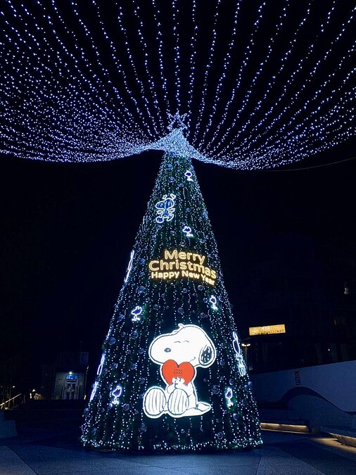 SNOOPY粉絲必須抱緊處理!捷運中山站外的心中山線形公園,已經有棵10米高史努比聖誕樹亮燈!即日起至2022/1/4為中山街頭點上歡樂氣息,還用超過30萬棵燈泡打造超過320公尺的銀河燈海,完全是約會首選地點!