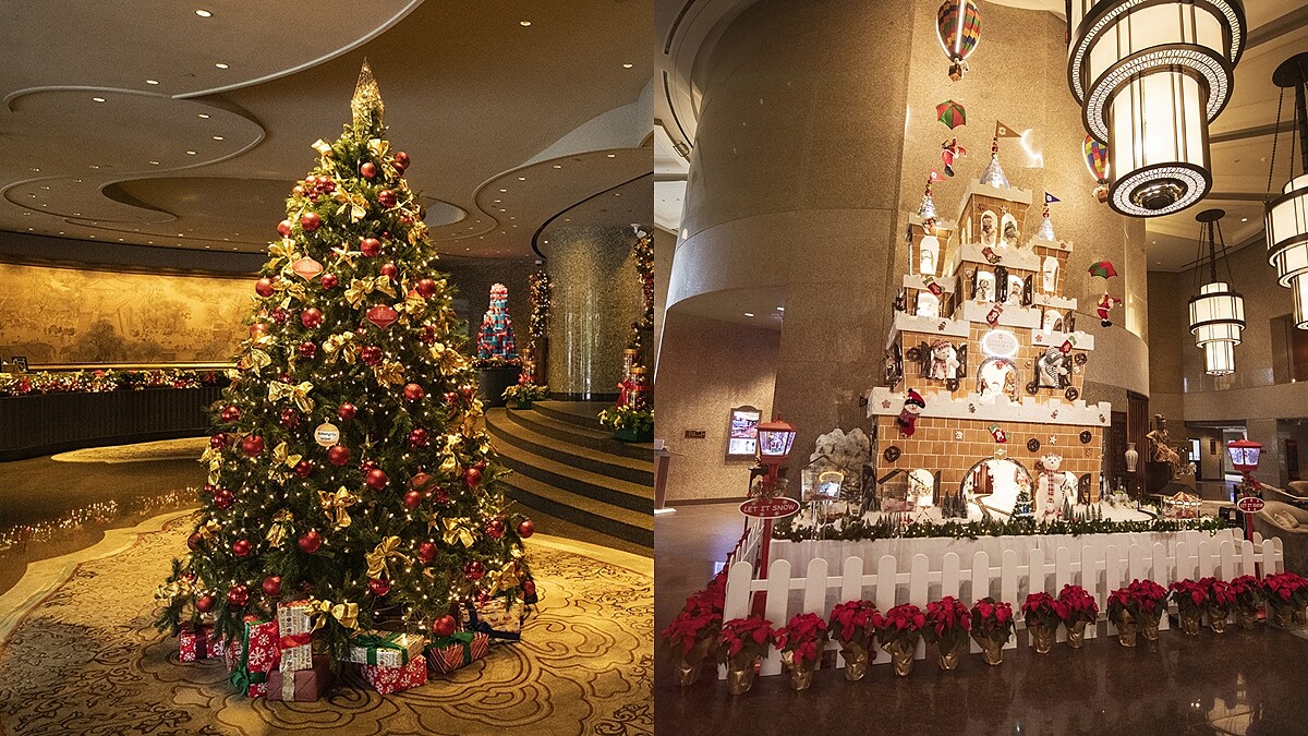 座落敦化南路上的台北遠東香格里拉,即日起有許多佳節佈置為造訪旅客心中增添一絲暖流,像是敦南廣場上的40呎高遠東集團聖誕樹,金色系設計、紅色愛心造型佈置傳遞「同心傳愛,希望滿載」主題;室內更有使用超過2000片薑餅製作、高達7公尺的「全台北最高」薑餅城堡,還有精緻細節值得好好欣賞一番。
