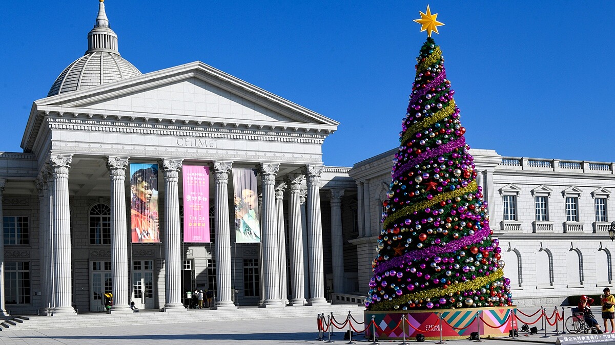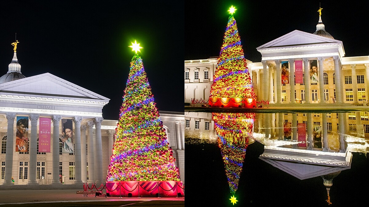 想要有異國氣息的南台灣民眾,勢必要走訪一趟奇美博物館了!位於門口、13公尺高的「幸福聖誕樹」,全新粉紅色調有著「美好」意象,並用彩球、星星點綴,傳遞出堅強溫柔的力量與美好的祝福。即日起展出至2022/1/11,每晚17:30~22:00點燈。