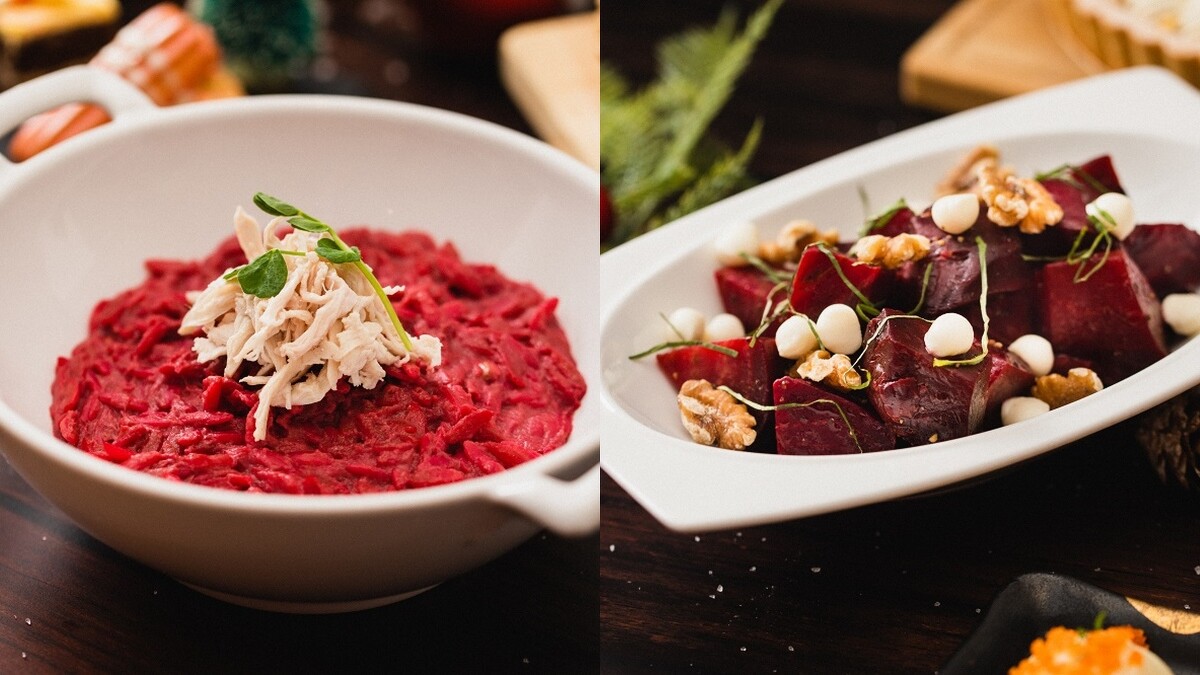 晚餐也希望感受濃厚佳節氣息?台北新板希爾頓酒店2樓的全日自助餐廳「Market Flavor悅.市集」也供應多道精緻料理,將紅甜菜根打成泥、選用米型麵拌炒的「甜菜根燻雞奶油米型麵」,不軟爛口感與吸睛色調讓視覺、味覺大驚喜!「紅甜菜根佐莫扎瑞拉起司沙拉」則將紅甜菜根經高溫烘烤後,與水根蔬菜一同拌入特製醬料,滋味清爽又開胃。而每日點心坊的南瓜派、核桃派,身為螞蟻人的你絕對不能錯過。