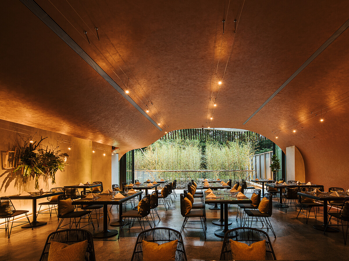 別具禪意地以佛經「了了分明,如如不動」的句子作命名,意寓明白自然的理法運作後,即使面對外界瞬息萬變,依然能保持內心澄靜。今年初才正式營運的了了礁溪,的確在最多變動紛擾的時間點,給予了旅人好好喘息的旅宿體驗。有著原始山林的況味,建築本身以樹洞為靈感,使用大量竹材建構出最外層竹圍,抹去稜角,將旅店安穩地籠罩著。內部的 Habitat 餐廳,外型也是宛如洞穴的半開放式空間,透過大片的落地窗引入自然光線,營造原始與前衛設計交融的氛圍。