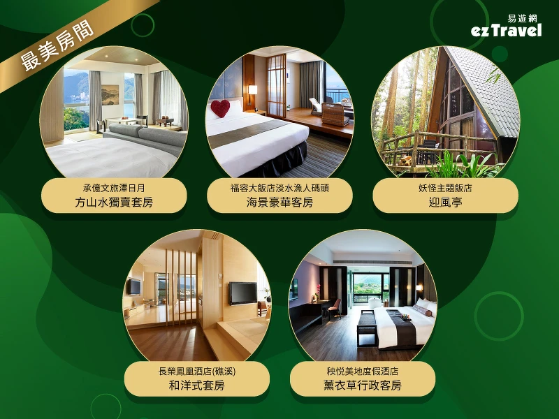 除了上述兩項,今年更新增「最美房間」獎項,可以把淡水山海景觀盡收眼底的「福容大飯店 淡水漁人碼頭」海景豪華客房、被形容走進《神隱少女》電影中的「妖怪村主題飯店」森林小屋:迎風亭,以及「秧悦美地度假飯店」具有沉穩內斂風格的薰衣草行政客房,你最喜歡哪一間?