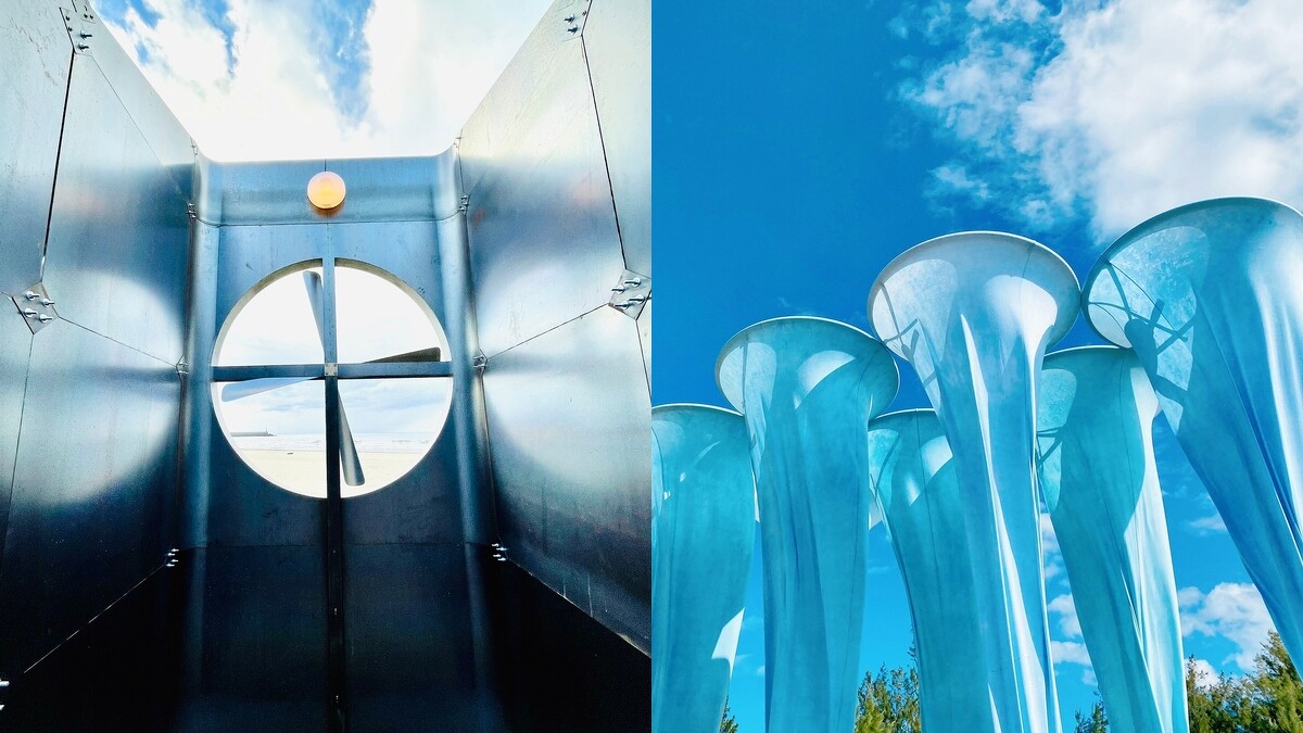 由禹禹藝術工作室打造的《風神號》,運用金屬構件打造出如宇宙飛船的奇幻作品,要給觀者反思自己與自然的平衡。還有由全台最大機器手臂一體成形3D列印作品《珊弧·山瑚》,呈現出海底珊瑚純淨光澤與夢幻樣態,叫人難以移開目光。