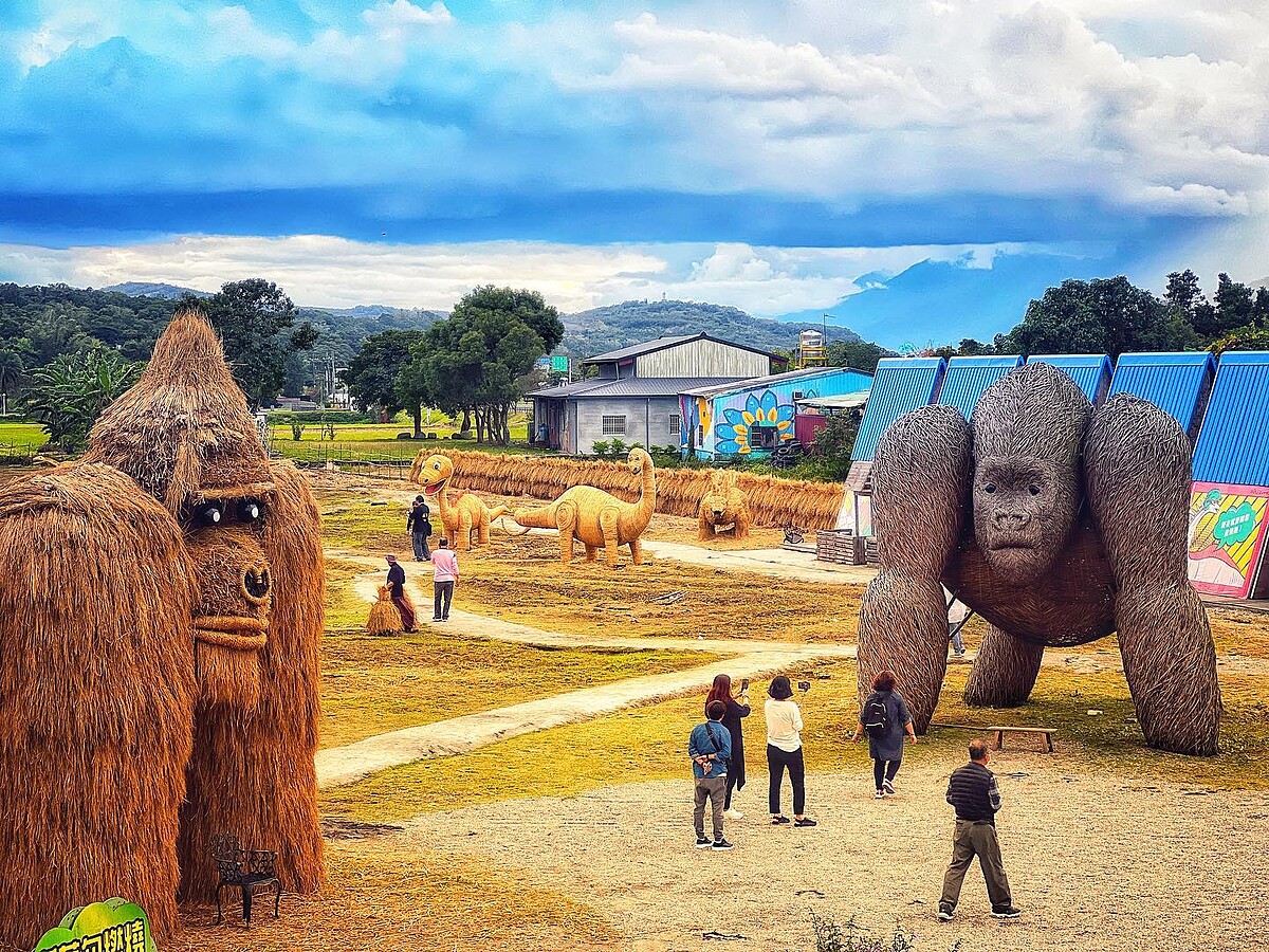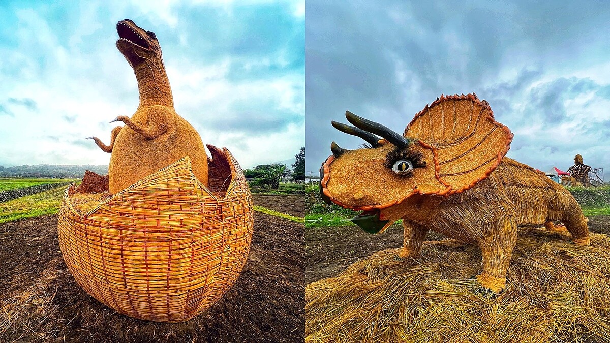 今年一共有近20件大型藝術裝置作品,都是參展農友、藝術家將廢棄的稻稈、竹子及漂流木等素材加入巧思後而成,還有暴龍、三角龍、甲龍、翼龍、阿馬加龍、摩斯拉、刺盾角龍、劍龍等造型等著遊客一一拍照收集,而連去年的6米高金剛也重磅回歸,展期預計到暑假,快找時間去感受侏儸紀的原始魅力。