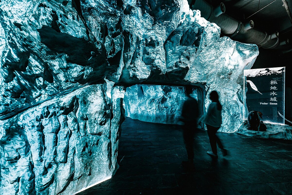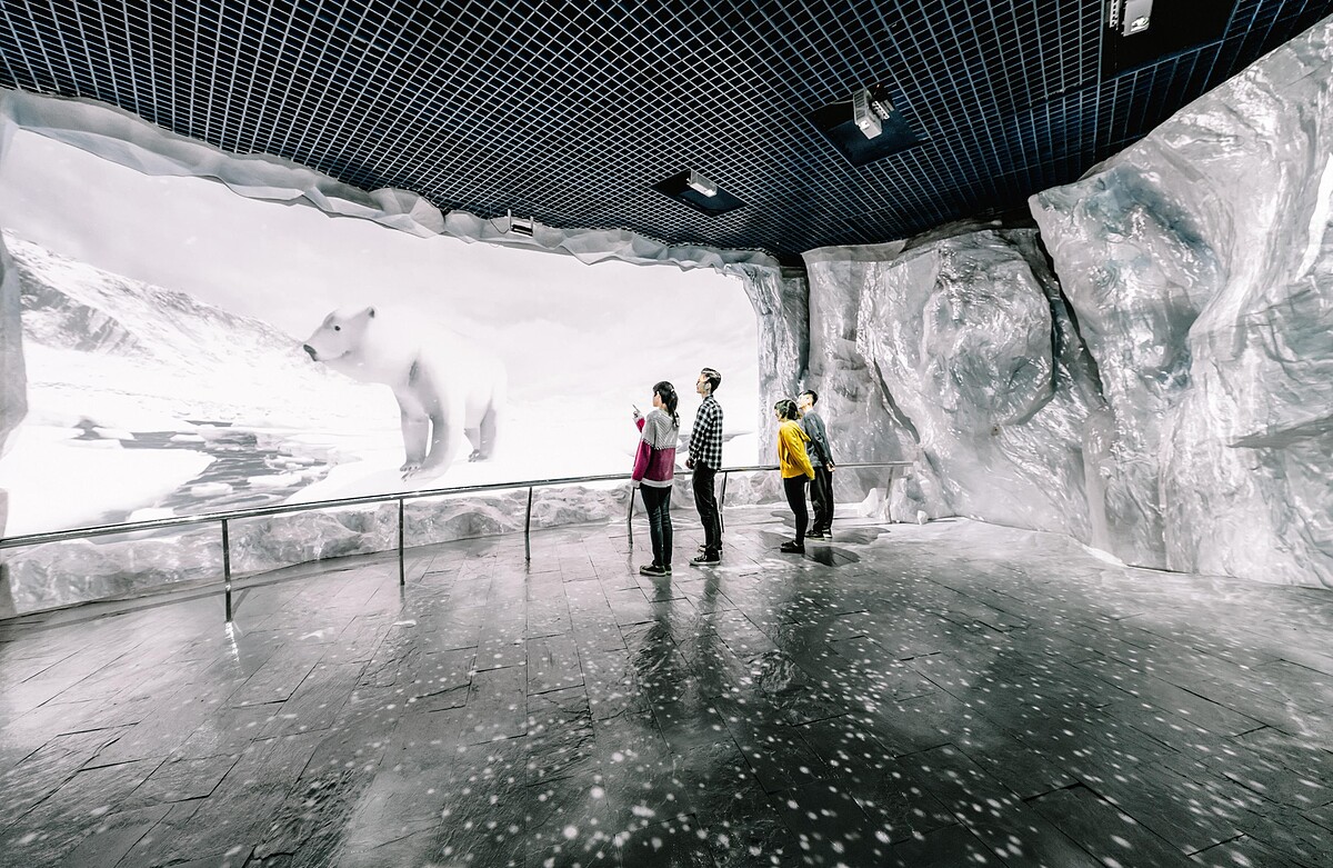 此外,在這裡還可以見到各式陸地與水中的南北極生物,像是極地霸主北極熊腳印、可愛又俏皮的南極企鵝,讓人彷彿置身南北極之中。