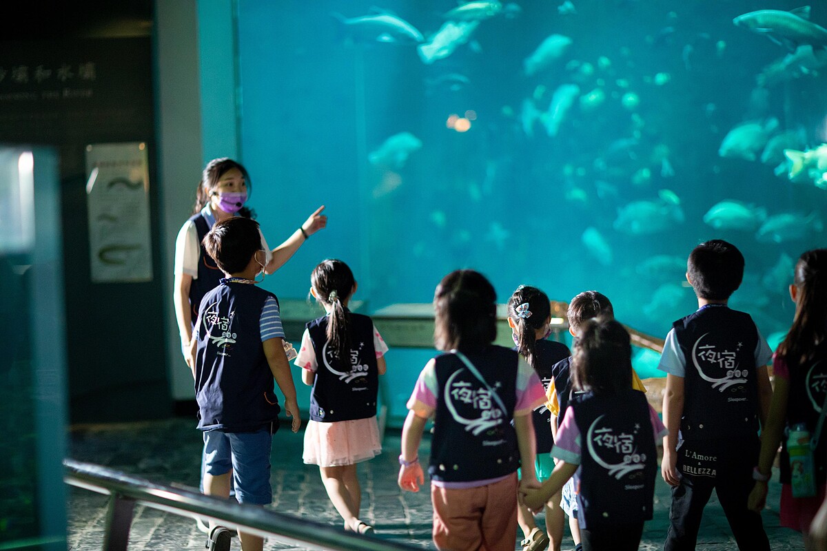而夜宿海生館來賓還能體驗專屬的「大洋池餵食解說」一窺海洋生物的照護環境、「潮間帶生態觀察」等豐富有趣的行程,不論是與閨蜜、情侶、親子都非常適合!