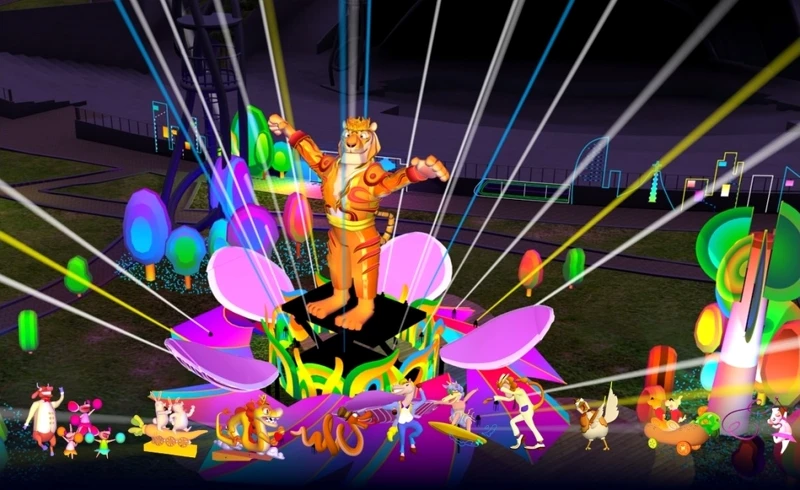 主燈秀是由傳統燈藝結合磅礡音樂所打造沉浸式劇場「虎威笙風」。在一片黑暗中,守護森林的虎爺緩緩升起、召喚森林萬物甦醒律動,一同舞動身體演出。每晚6~9點整點各演出一場(2/12開幕第一場時間為19:20)。