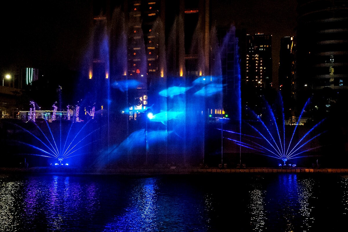 一年比一年更盛大的「2022新北鯨彩中港光雕展」,今年最大亮點是宏匯廣場旁願景公園上演的「鯨彩中港」水舞秀,高達7公尺巨型水幕搭配雷射科技交織而成炫目水舞秀,其中還有鯨魚、魚群描繪出迷人海洋風情,帶給觀眾整整4分鐘目不轉睛的視覺饗宴。