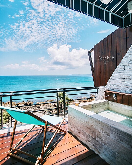 頂樓的海景房型在戶外陽台擺上浴缸,讓妳與心愛的人在星空下泡澡,反覆聆聽海潮上岸的聲音,望著海喝一杯啤酒盡情享受假期的愉悅!