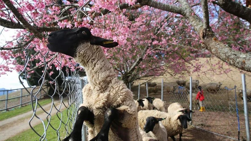除了能與羊咩咩近距離互動,適逢櫻花盛開季節,清境農場裡頭規畫一處全長500公尺的「櫻花秘境」,由服務中心至小瑞士花園間種滿約五百多株的富士櫻、吉野櫻等櫻花樹,現在已進入最佳賞花期,能大拍美照之餘,還有機會看到「羊吃花」的超難得畫面,神似「笑笑羊」的逗趣模樣實在不容錯過。