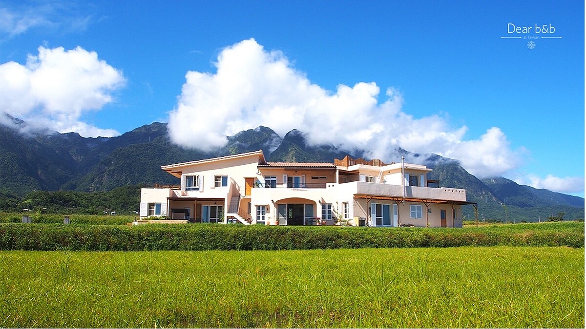遠眺寬闊太平洋閃耀著動人波光、背倚雲霧繚繞的海岸山脈,田野間一片片美麗稻浪,像歐洲電影裡的鄉村度假莊園,每幕風景都有專屬妳們的幸福回憶。
