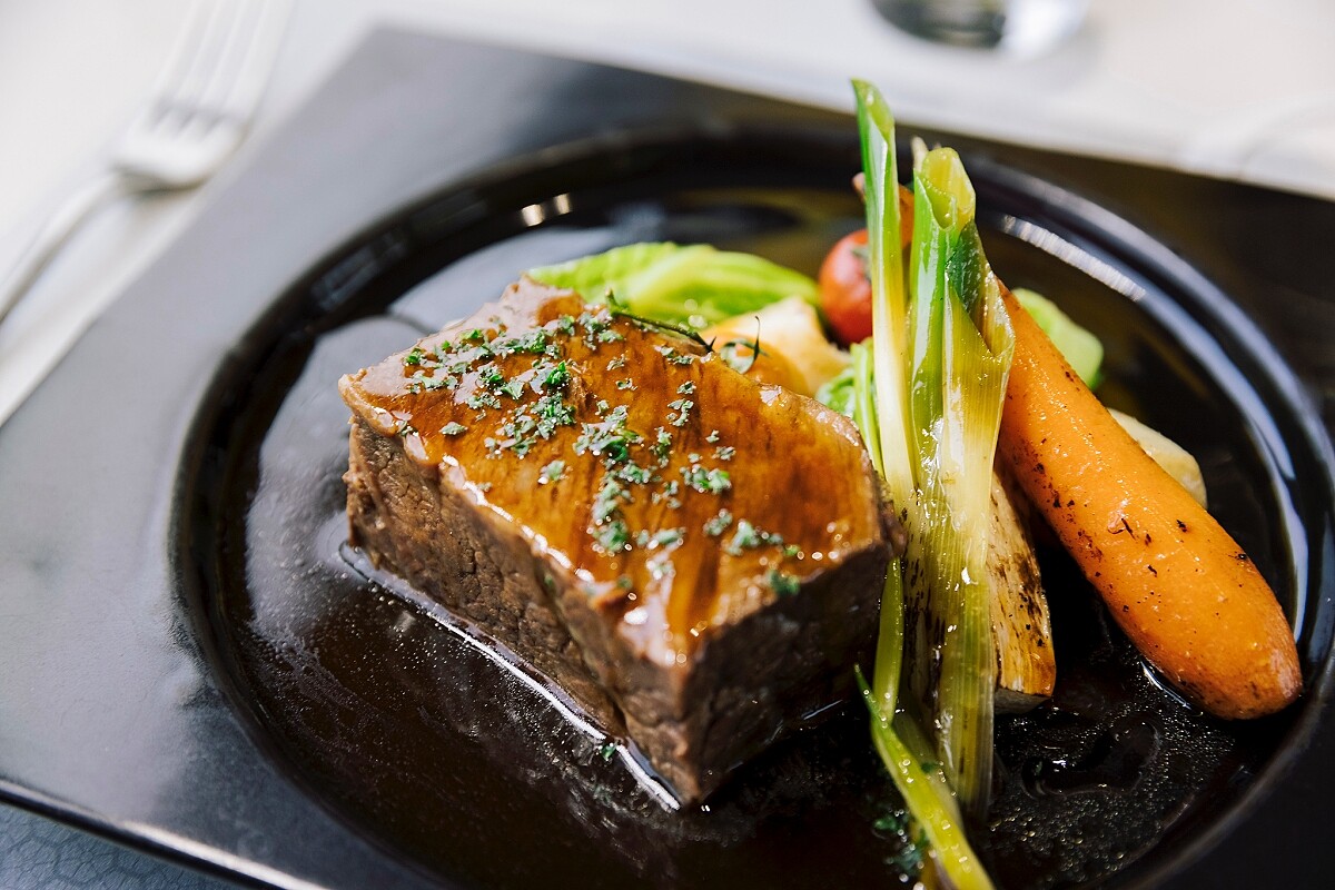 星廚現烤頂級無骨牛小排襯甘藍筊白筍與葛瑪蘭刺蔥醬汁