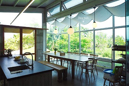 後方的玻璃屋廚房餐廳,用心的設計收攏屋外綠意,也讓風息自在對流,偌大的中島廚房,讓旅人一家共享料理的樂趣,當孩子推開紗門跑下後院草坪繼續玩樂,家人們伴著嘻笑聲分工合作,陣陣笑靨與香氣裡,大家圍聚大木桌晚餐、分享,也實現了關於家的想望。