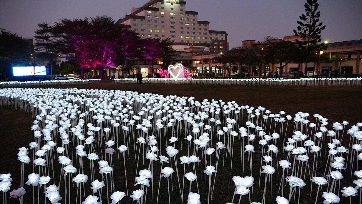 因應情人節到來,臺南市政府觀光局與工務局等團隊特地打造浪漫景點,以「浪漫花海.愛在台南」為主軸 ,佈置3萬朵白色玫瑰花害!呈現出「白天花海、晚上燈海」的絕美景象,從早到晚都超好拍!