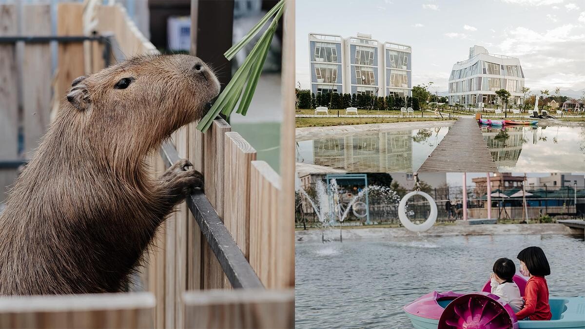 2021年展開試營運的「天使星夢渡假村」,能讓情侶、一家大小好好療癒身心!園區內超大的「天鵝湖」可以戲水、划獨木舟,更可以餵食水豚君、梅花鹿、羊駝,另外也規劃許多遊樂器材、拍照景點,一整天都玩不完。