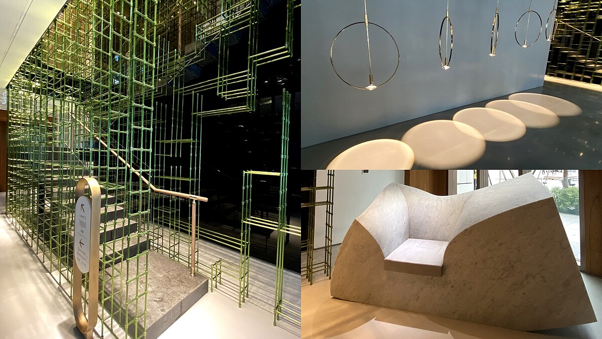 寒舍餐旅集團第三個自有品牌「寒居酒店」,以「都市桃花源」貫穿全館,步入大廳後便能看到英國藝術家團隊保羅.考克斯基的《被擠壓的大理石沙發》、加入放大鏡與光影元素的的吊燈、有著中國武俠風的竹林裝置及錄像作品,配合與台灣首座室內玻璃屋森林香氛植物博物館「香草菲菲」合作、推出寒居酒店專屬香味「Hoot No.116」木秀之森香氣,五感皆能沈浸這座「桃花源」中。
