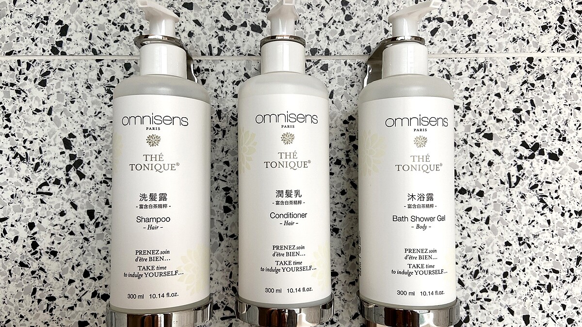 結合環保概念,房內沒有瓶裝水,改以客房樓層引進氣泡水界的LV「Natura微礦氣泡機」,提供純淨飲用水,方便房客取用;牙刷、漱口杯等備品多可回收再製,為地球盡一份心力。