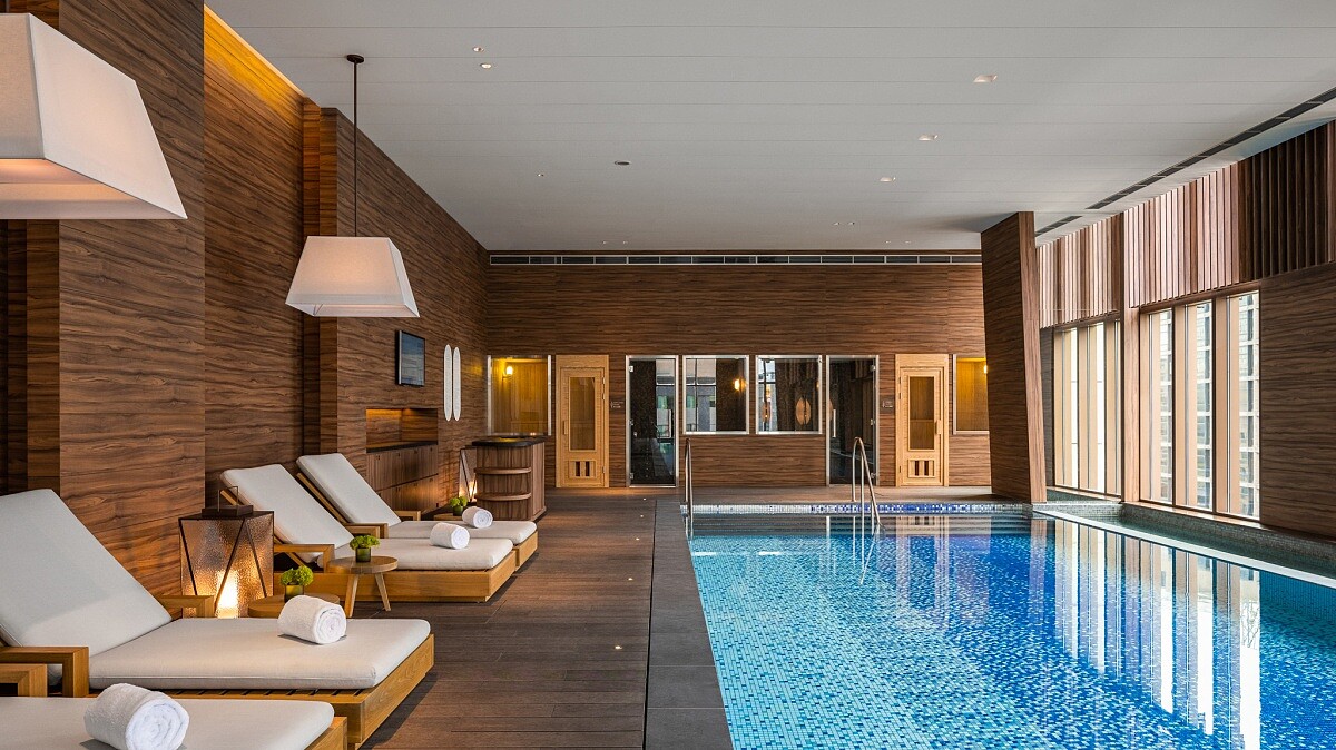 即便在繁忙的生活步調中,都市人仍能在「寒居酒店」中維持身材健康!酒店最高的10樓占地130坪,設置健身房、室內溫水游泳池,包含樓梯健身機、史密斯健身器材、蒸氣室與烤箱,使用期間能飽覽都市風景,實為宅渡假一大樂趣。