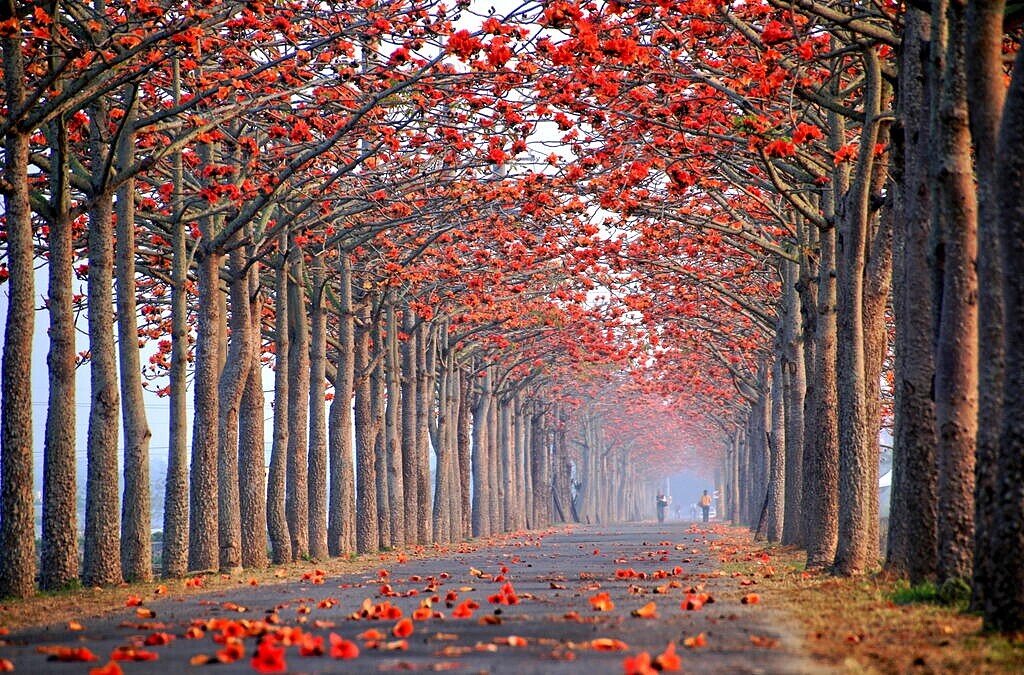 曾於2015年獲選「全球15條最美花海街道之一」的「林初埤木棉花道」,全長866.5公尺將日漸形成鮮豔醒目的橘紅花道,其火紅花瓣在藍天白雲輝映下顯得相當凸出,搭配整齊排列、一旁的碧綠春耕水田,勾勒出愜意閒暇的鄉野情懷,吸引眾多遊客流連忘返。