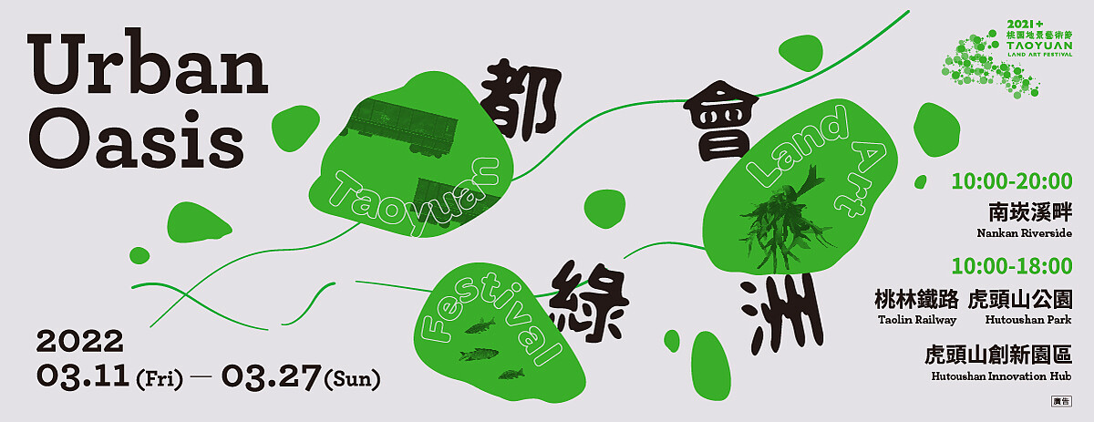 2021年因疫情停辦,今年更名為「2021+桃園地景藝術節」,名稱「+」期望能賦予人們面對疫情的勇氣,以「都會綠洲」作為主題、「都會綠洲,親山近水」為主軸,更首度移至都會區「桃園區」展出。重點作品、活動、交通資訊都整理好了。
