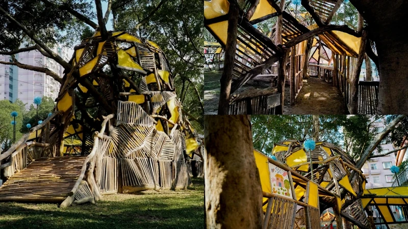 全長16公尺的藝術品《我的秘密基地》位在大檜溪公園,將樹木、草地結合打造能互動的藝術作品!可以在三座圓形樹屋中穿梭,民眾可以穿梭其中,裡頭還有社區居民創作的地圖,宛如一座共享秘密的基地城堡,令人不禁想起兒時遊玩樹屋的回憶!