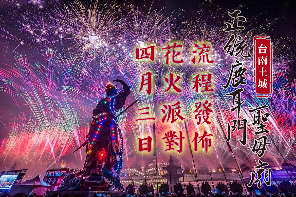 佔地40公頃的台南土城鹿耳門聖母廟,是全台規模最大、歷史最悠久的媽祖廟。1641年創立至今近400年,自民國76年舉辦迎春活動,2021年受疫情停辦、今年初活動也被迫延後。而眾所期盼的年度花火派對確定於4/3舉行,更預告會是比照國慶煙火等級的壯觀規格。