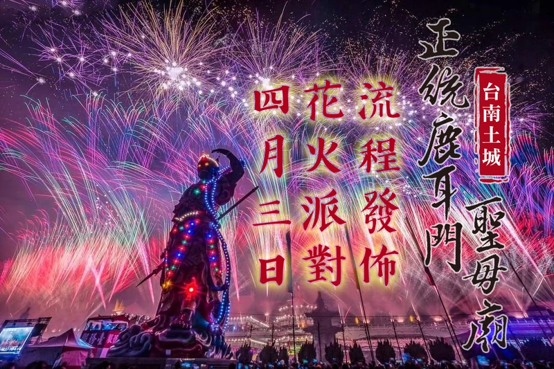 有著悠久歷史的台南土城鹿耳門聖母廟,要在清明連假期間舉辦花火派對!近年來全台各地受疫情所苦,而煙火有著消災祈福之意,2022年以「福虎昇豐」為主題,規畫三大段落、總長將近40分鐘的聲光饗宴,讓整座莊嚴廟宇瞬間熱鬧起來!