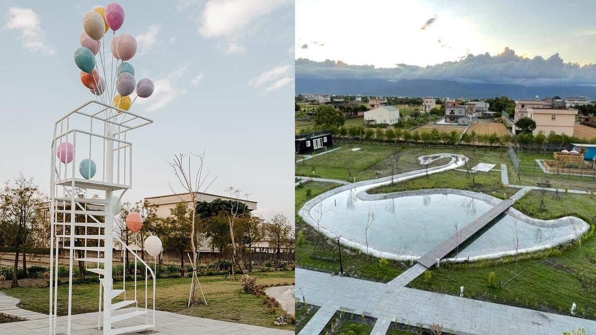 園區內吸睛的還有這座水深90公分的「夢幻天鵝湖戲水池」!從高處俯瞰,可以發現它是一座巨大天鵝輪廓的造型,適合全家大小一同在午後划獨木舟、戲水,結束後記得到隔壁網美打卡區大拍特拍,多處如落羽松步道、兒童沙坑、翹翹板、溜滑梯、盪鞦韆,安排好行程準備發一波IG美照吧!