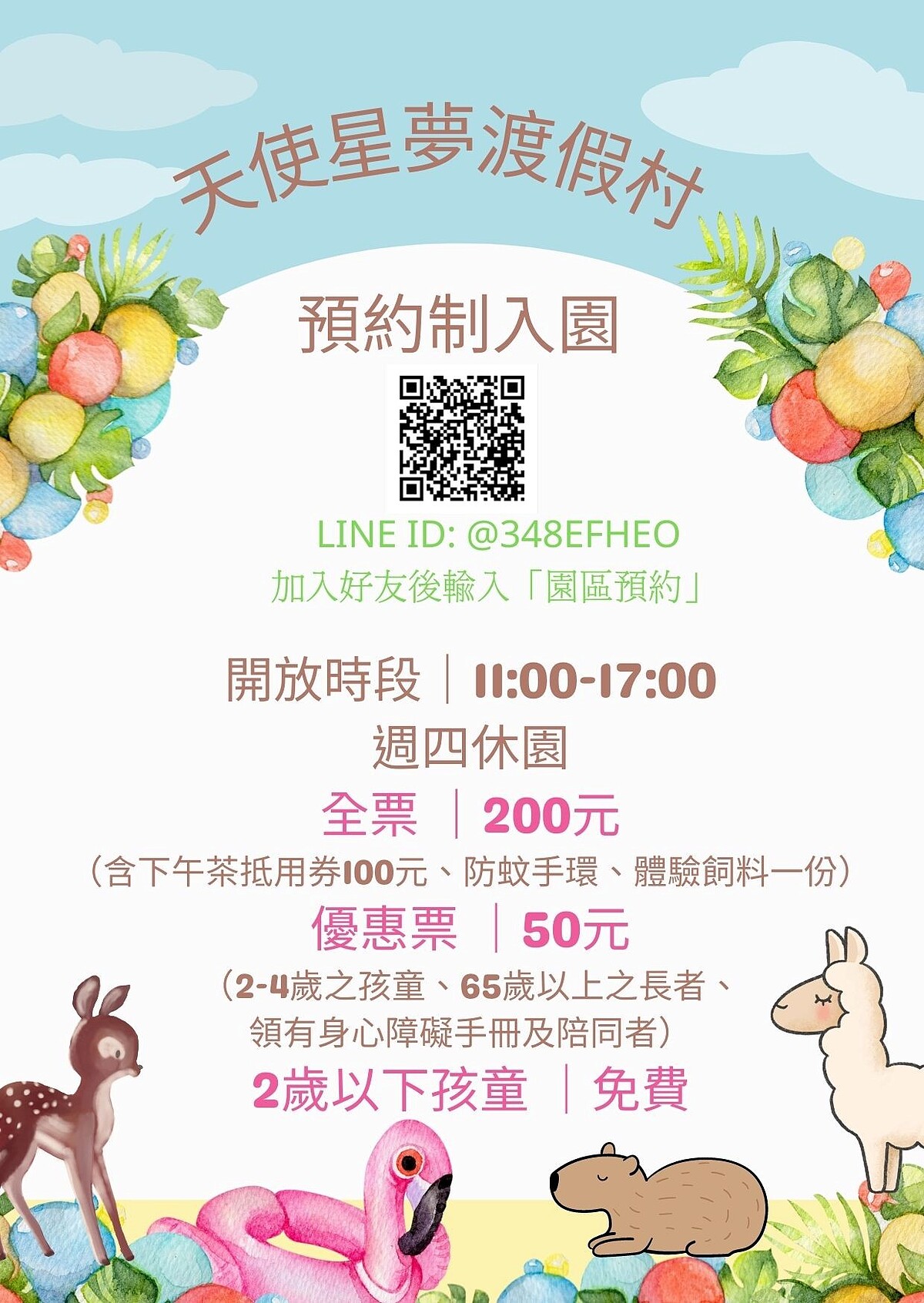 門票:全票200(含飼料乙份、下午茶100元折抵券、防蚊手環)