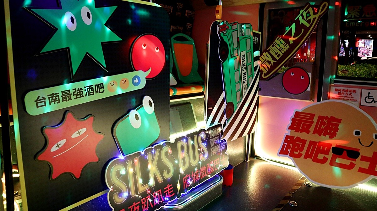 這台「微醺巴士」本身也超有趣,車身、內裝有滿滿霓虹佈置,並播放電子音樂;而在行徑每間酒吧途中,列車長還會進行酒吧導覽、冷知識遊戲時間,答對能贏得換取調酒積分,答錯則會用SHOT杯懲罰,宛如一座「移動夜店」般,把週末夜氣氛炒到最高點!