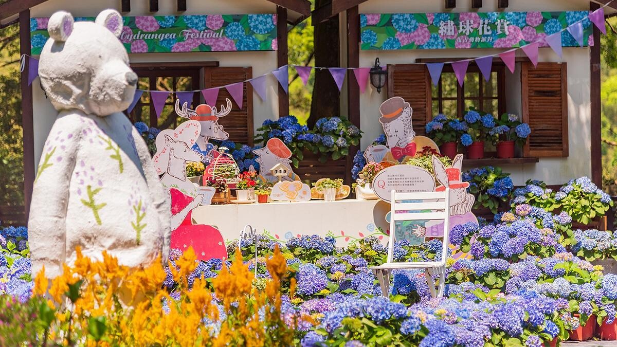 初夏正值繡球花盛開的季節,每年都以唯美景色叫人流連忘返的薰衣草森林,這次以「繡球花賞—復古動物派對」為主題,保留去年最夯的「繡球浴缸造景」、「花水手舍」之外,還有換上百老匯復古裝扮的森林動物、駐點在園區內的各角落,看數隻小熊排排站的可愛畫面,讓賞花的遊客少女心一秒融化!