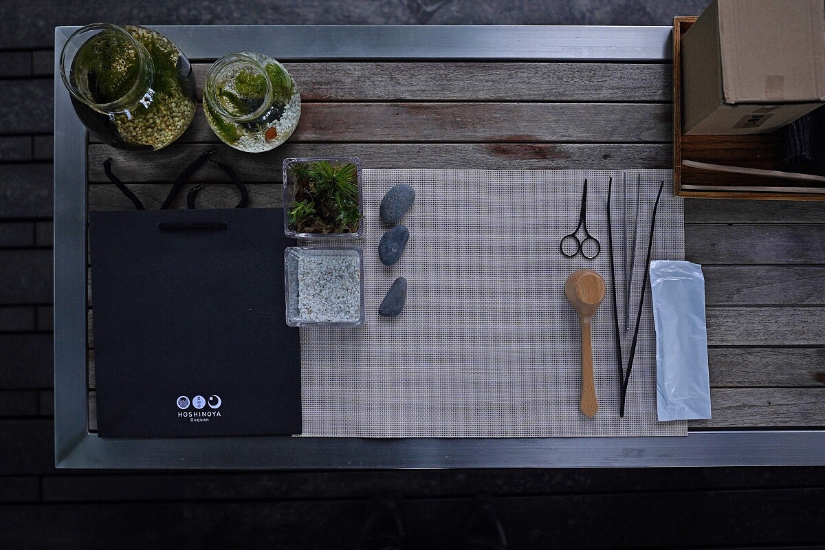 ・水之巡禮:虹夕諾雅 谷關園區內蘊藏豐富的景觀與植物,所有花卉、植栽皆沿著水道而種植,也通過此安排打造成療癒的「水之庭園」意象,為配合專案推出「沐暑度假村」版本的草花散策行程,帶領旅客先深入瞭解園區植物生長的樣貌,並在流水、蟲鳴、鳥叫的環繞之下製作屬於自己的生態瓶,作為此次「沐暑度假村」行程的紀念品。