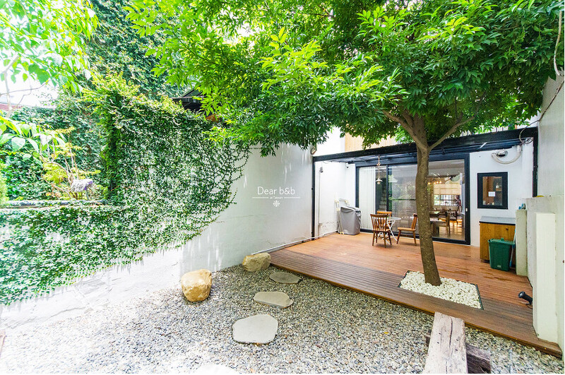樹舍裡有一處寬敞的後院,種著一棵翠綠的肉桂樹。在陽光下翠綠的葉子閃閃發光,淡淡的香氣隨著鳥鳴散開,用木頭搭起椅子,在院內談天說笑,看毛孩在這裡嬉戲奔跑,享受靜好的私密時光!