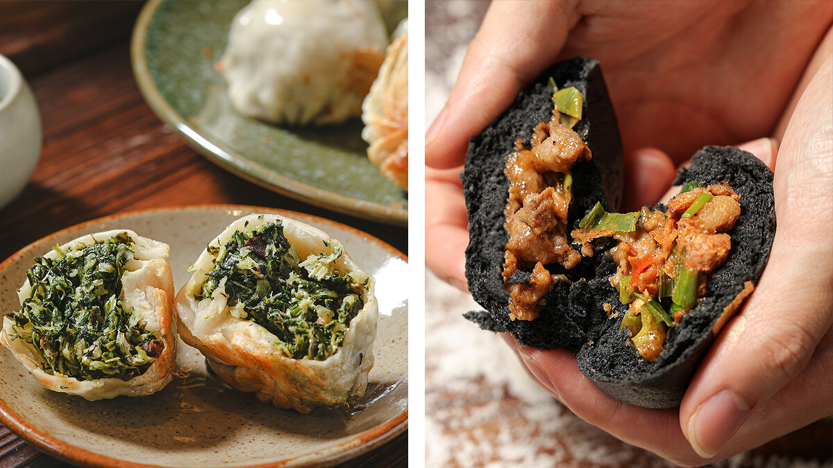 ▲ 滬舍餘味店內黃金商品「翡翠生煎包」為創辦人思鄉情濃研發許久的上海正宗味,嚴選新鮮食材製作、堅持高品質且經濟實惠的經營理念,並於2020及2021年皆榮獲米其林必比登推薦餐廳。 | ▲ 煙波新竹湖濱館-醉月樓中餐廳推出兩件熱門點心,其「麻婆櫻桃鴨香包」為餐廳內熱銷商品,鹹香微辣的鴨肉餡搭配鬆軟外皮,銷魂口感令人一口接一口! |