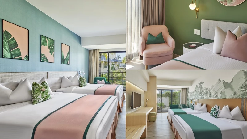 館內共281間客房,可分為雙人房、四人房、25坪大小的豪華套房,現在改用清新木質調作為主要風格,更加入山海風情元素、粉紅色與粉綠色等莫蘭迪色調,一進房門便會深深著迷!