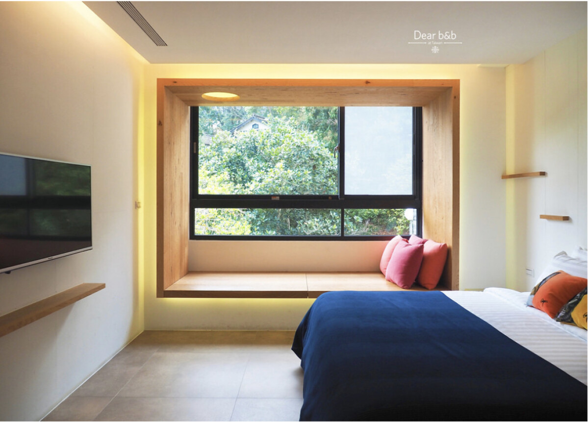 簡約清新的空間設計,以溫暖配色圍聚寬敞房間裡的美好氣氛,搭配窗外的大片綠意光景,讓人愜意放鬆,偶爾還能在房邊的蓮霧或龍眼樹叢間看見猴子嬉戲跳躍。