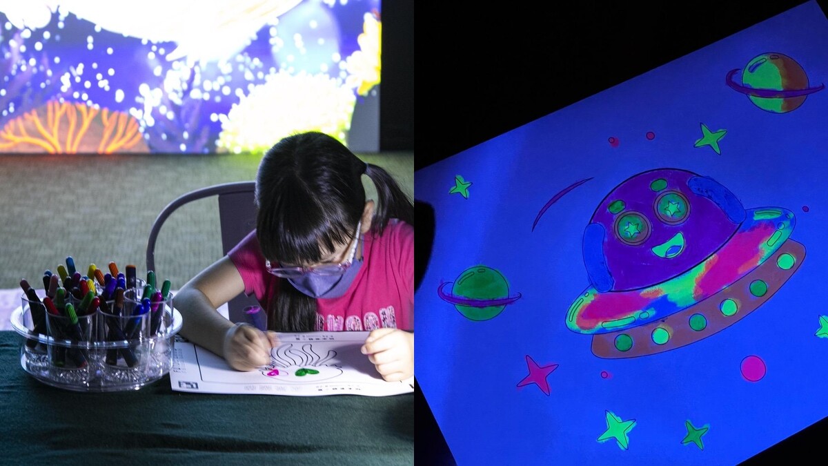 還記得小時候玩的隱形螢光筆嗎?「Little Brian螢光塗鴉派對」帶你重溫這美好回憶!每天早上11點開始進行的DIY活動,使用英國Little Brian可洗式無毒螢光色水彩棒、歡迎大家發揮創意自由畫作,接著以紫光手電筒照射,就會呈現出五彩繽紛的未來世界。