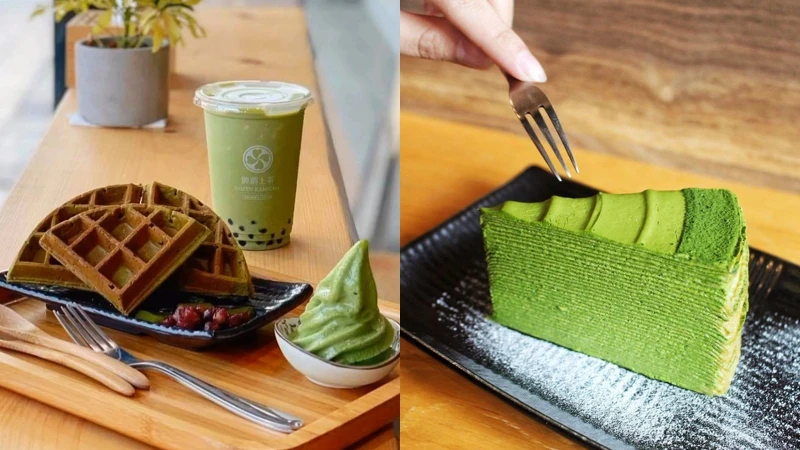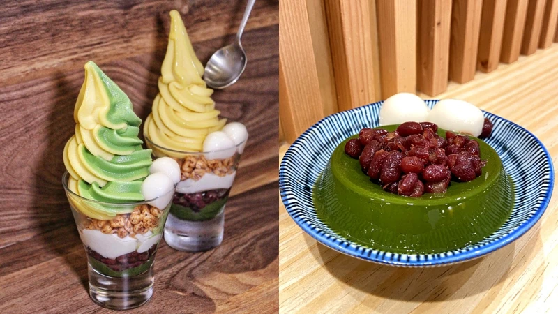 大推用抹茶凍、蜜紅豆、手工豆芙及霜淇淋堆疊成的「宇治聖代雙重奏」、有漸層色調的「抹茶三味拿鐵」,都有著綿密口感及,創造視覺與味覺雙重享受!