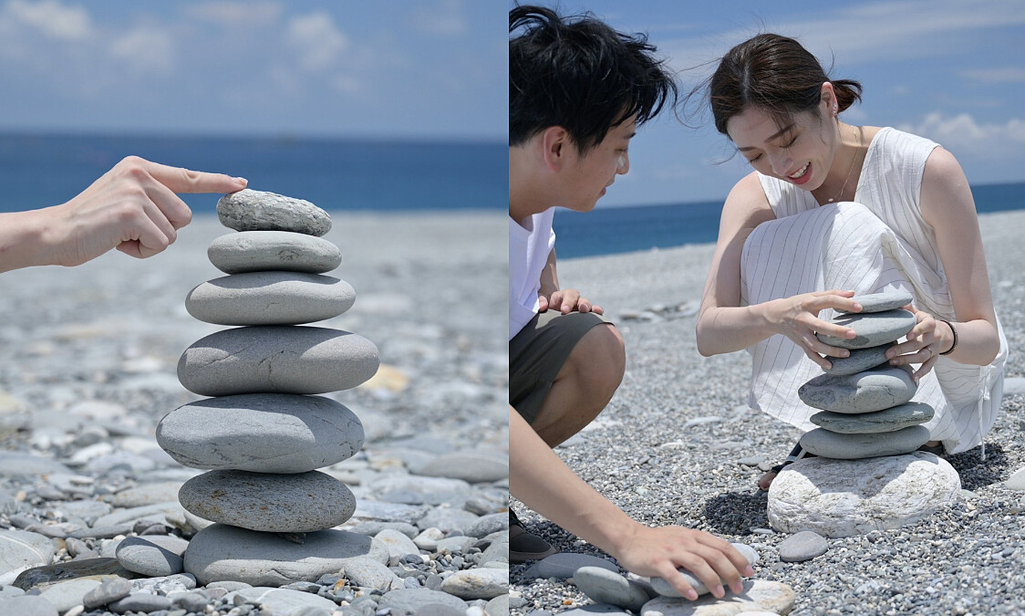 相傳只要和心愛之人共同在七星潭的海灘上,將每個圓潤透亮、大小不一的鵝卵石或小石,一顆一顆往上堆疊超過七顆以上,彼此之間的感情就會受到祝福而長長久久。這樣的美好儀式感自然吸引不少情侶、夫妻、閨密或好友們紛紛去朝聖,希望獲得「疊石傳說」的祝福,感受滿滿的幸福時光,擁有真正「石石」好甜的永恆印記。
