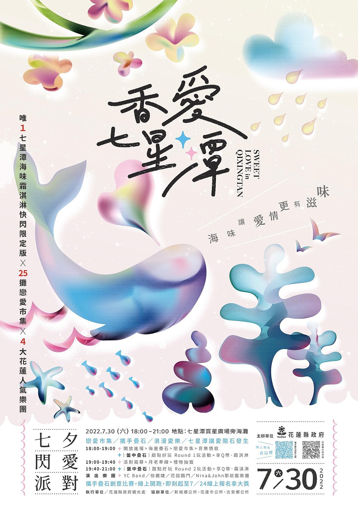 七夕閃愛派對,推出唯一七星潭海味霜淇淋「快閃限定版」,集結了25家花蓮特色商家組成戀愛市集,並邀請花蓮四大人氣樂團輪番開唱,一定要讓你有一個難忘的七夕情人節。