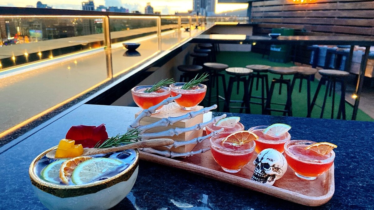 酒店招牌:頂樓高空露天酒吧「Pier No.1」也同步推出「命懸一線」VR實境遊戲。場景為摩天大樓頂端,要通過懸空獨木橋方能獲救,而後方還有喪屍追趕,極具臨場感的沈浸式體驗,絕對會嚇得大家腿軟!另外7/29至8/28更因應鬼月推出應景的「孟婆湯」、「甜口毒藥」調酒,視覺、味覺都能感受農曆七月的詭譎氣氛。