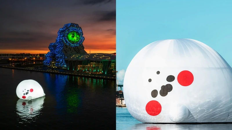 13米高小海豹浮出高雄愛河!六大LINE貼圖「巨大化」裝置藝術限時登場,把港都變超可愛