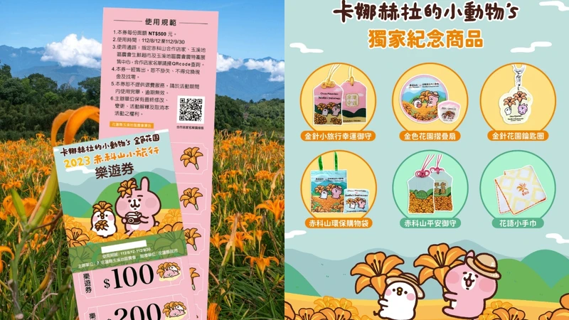 2023年更與卡娜赫拉的小動物一同推出超萌農遊券,P助、粉紅兔兔化作多種可愛賞花紀念商品,在花季期間還會看到「粉紅兔兔大氣球」!粉絲們該出發搜集囉~