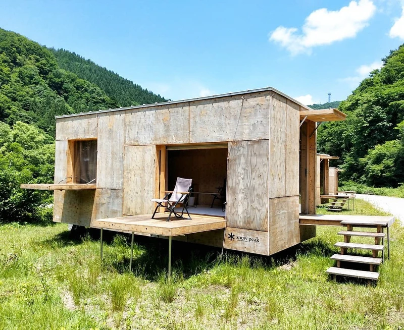 位在日本富山縣的「利賀國際露營場」佔地遼闊,擁有搭帳露營區、小木屋等各種不同類型的露營方式可選擇。其中最推薦的「住箱」是由建築大師隈研吾和知名露營裝備品牌 Snow Peak 攜手打造。