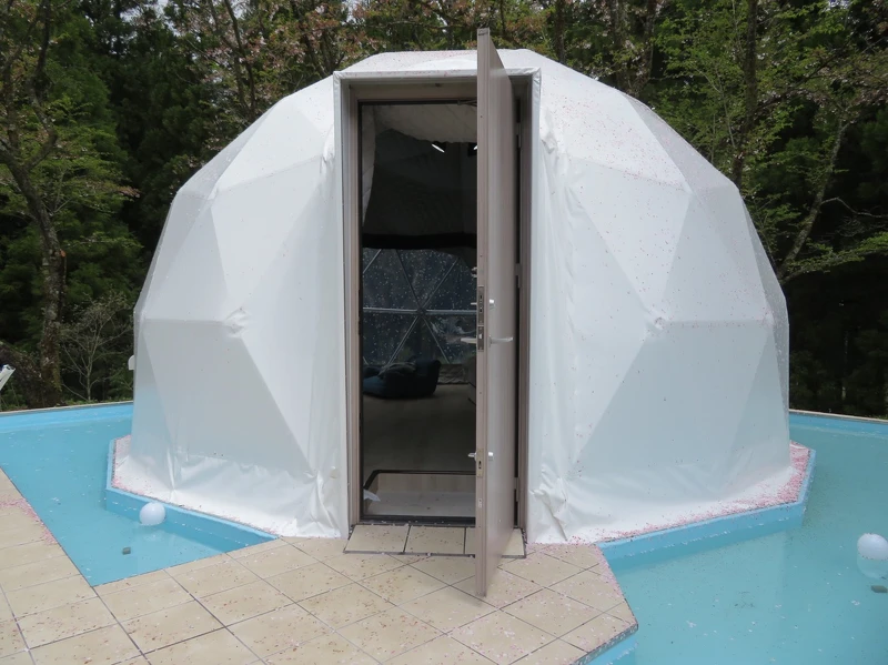 位於福井縣的露營區「RUPO之森」,能享受彷彿漂浮在水面上的球形帳篷, 此Aqua房型還有設置戶外按摩浴缸,在泡澡的同時,還能一邊享受森林的芬多精。