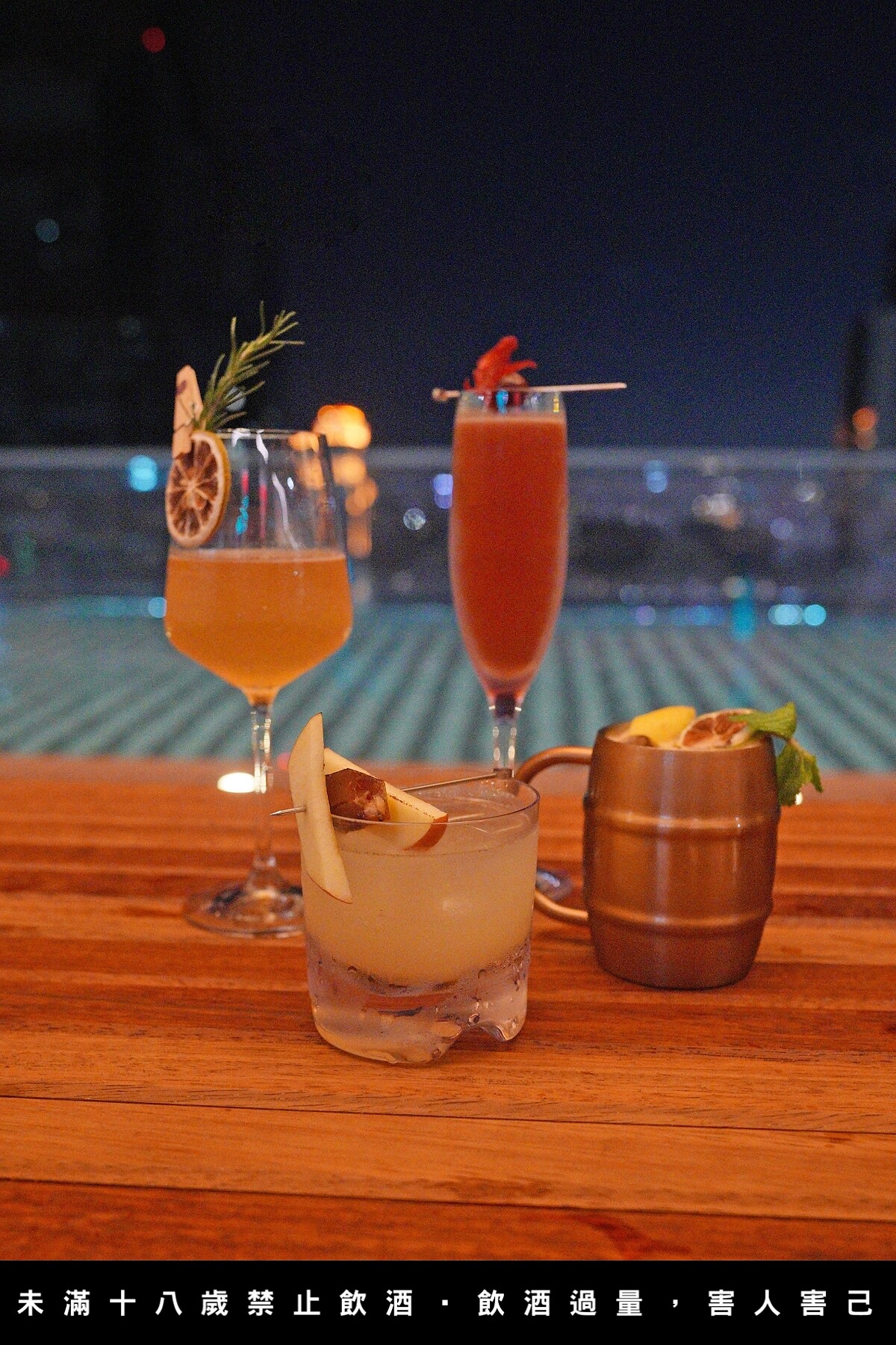 空間還原 cyberpunk 風格,使用大量金屬材質、象徵前衛未來感的塑料以及迷幻多彩的光線打造;提供經典調酒以及融入在地特色的風味調酒,以及搭酒輕食,提供旅人池畔微醺之夜。