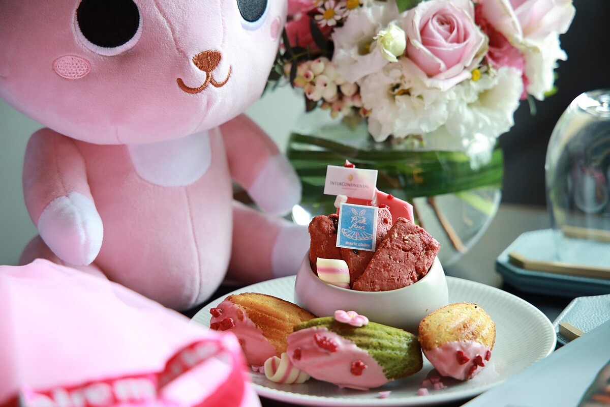 「粉紅能量主題下午茶」由洲際行家主廚余俊傑、甜點主廚陳一輝以粉色澎裙及粉色球鞋等主題發想,獻上粉紅路跑及乳癌防治相關造型茶點:粉紅茶點設計以食補概念為發想,精選多種莓果如蔓越莓、覆盆莓、藍莓及蘋果、甜菜根等健康食材,為女性補充能量同時增添好氣色,下午茶每日限量供應,售完為止。