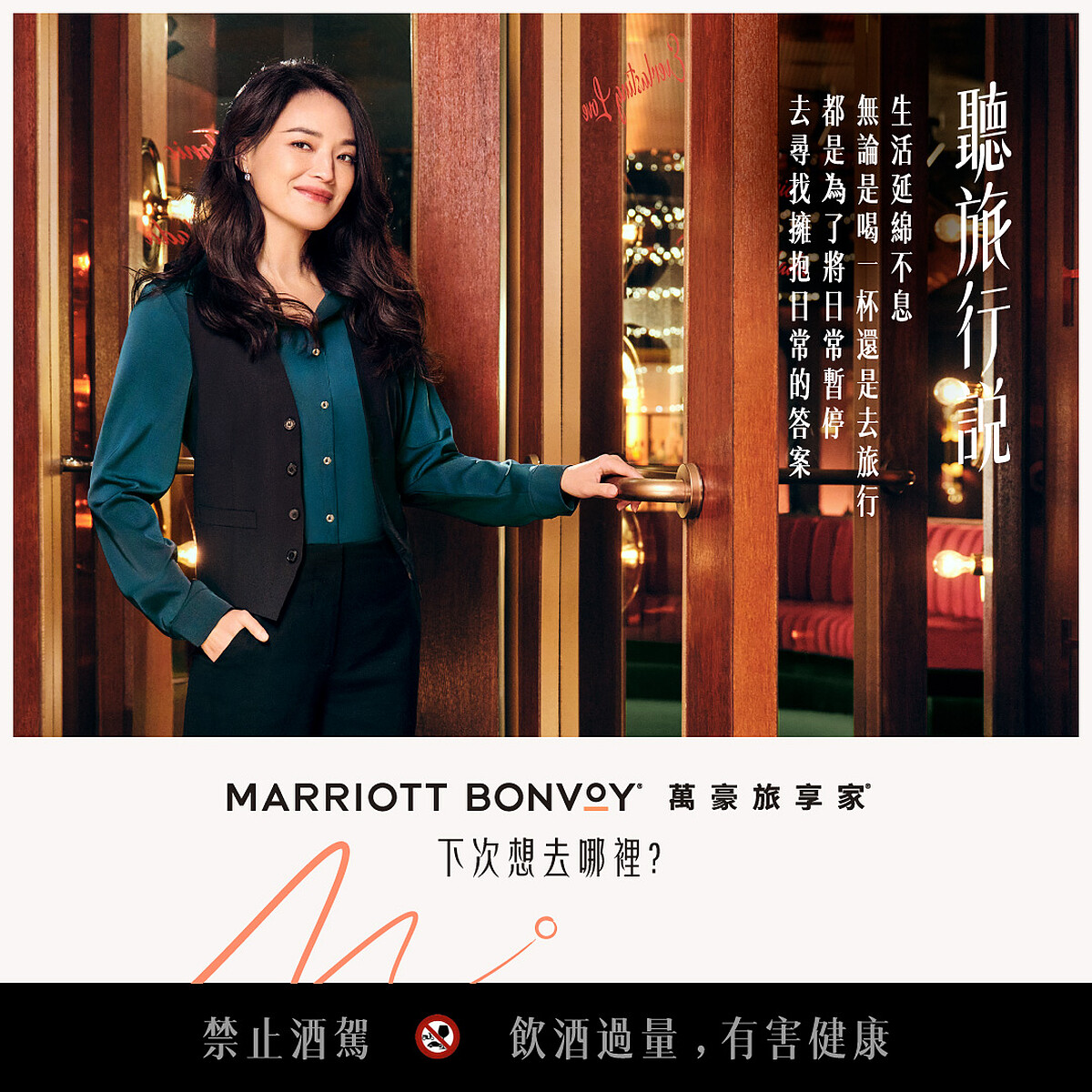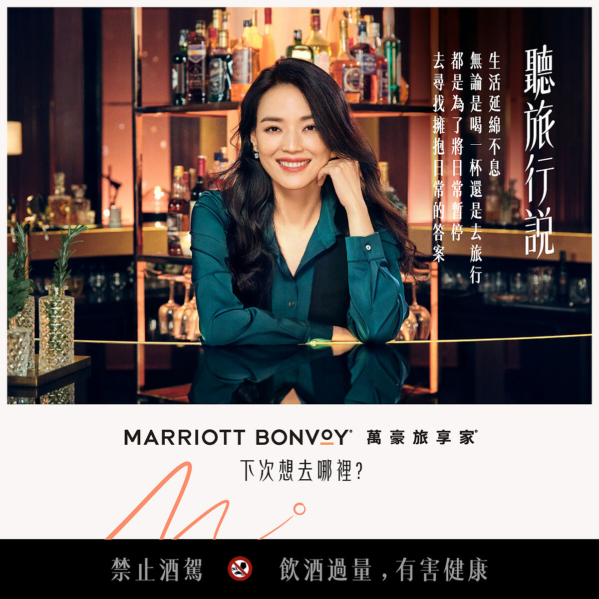 萬豪旅享家在由廣告導演張哲掌鏡的宣傳影片《聽旅行說》中,邀請舒淇化身性感嫵媚的酒吧老闆,藉由三段影片將旅行與親情、友情和愛情相串連,搭配知名音樂製作人雷光夏創作的背景曲調,交織出一部部能重新審視人際關係的旅行故事,也點燃你我沈寂已久的旅遊魂。